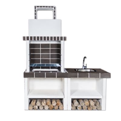 Άριστη κατασκευή με επένδυση σε καφέ πυρότουβλο των πάνω επιφανειών και τέσσερα ράφια αποθήκευσης για τη μέγιστη διευκόλυνσή σας. Μπορεί να τοποθετηθεί έξτρα σχάρα εκτός από την ήδη υπάρχουσα.