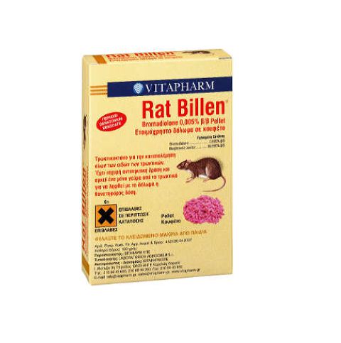 Το Rat Billen είναι ένα τρωκτικοκτόνο για την καταπολέμηση όλων των ειδών των τρωκτικών. Έχει ισχυρή αντιπηκτική δράση και ερκεί ένα μόνο γεύμα από τα τρωκτικά για να ληφθεί με το δόλωμα η θανατηφόρος δόση.